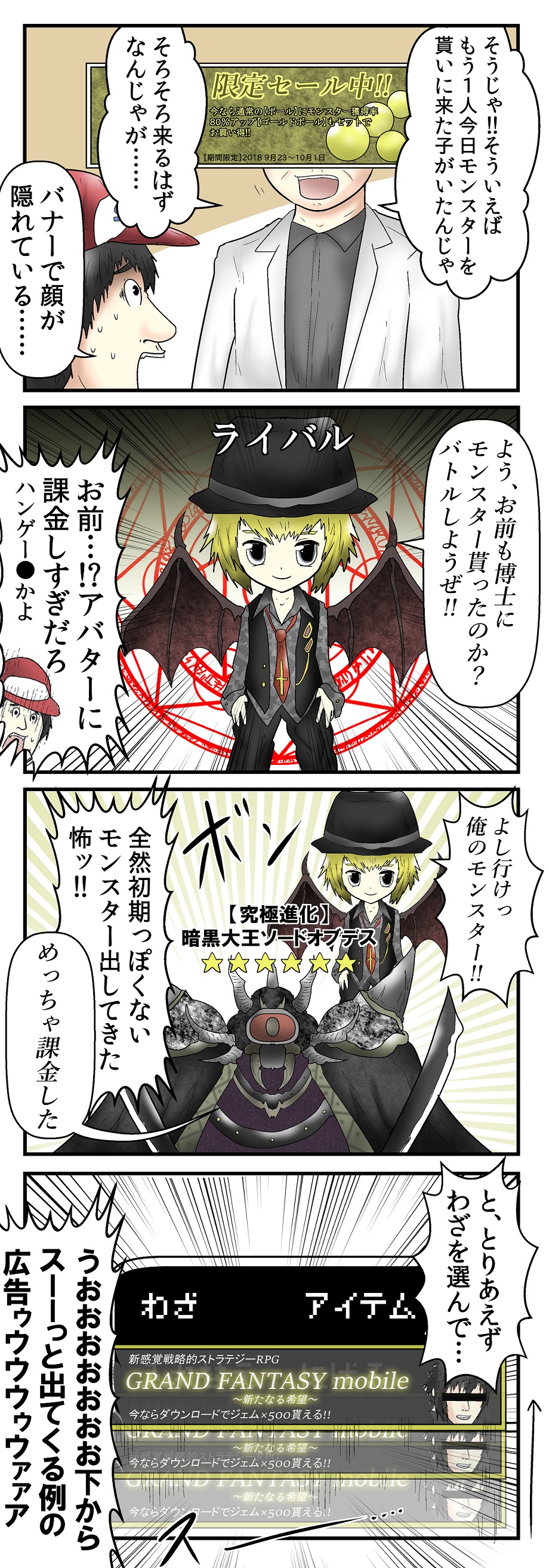 2018年09月23日 現代版ポケッ●モンス●ー赤 ~vsライバル~ 最初に課金したもん勝ち 前回→http://yashiroazuki.blog.jp/archives/11681405.html 「【ゲーム】」カテゴリの最新記事 タグ :#やしろあずき#4コマ 前の記事僕と母とアカウント共有の話 次の記事母親と私生活の話 コメント コメント一覧 (12) 1. ババァのガチファン 2018年09月23日 12:25 おい王子wwwwwwwwwww 2. さばみそ 2018年09月23日 12:32 例の広告ウザすぎるから排斥すべきそうすべき 3. ぴよん 2018年09月23日 12:32 しかも流れ終わるまで待たないとスワイプできないヤツwwww そして見せつけるためかカタツムリみたいな速度しか出ないwwww 4. マイケル 2018年09月23日 14:32 新感覚戦略的ストラテジーRPGとかいうよくあるやつで爆笑した 5. 名無し 2018年09月23日 16:20 あの広告の出し方いらないよなー 早く広告を個別で拒否出来るようにしてくれないもんかねー 6. 名無しの三角コーン 2018年09月25日 09:38 画面内を移動する広告はアウトになったって話を聞きました 7. 透明な三角コーナー 2019年02月05日 09:08 草 8. おん 2019年03月03日 10:04 動く公国は当たり判定デカすぎるんですよね笑 9. わ 2019年03月31日 20:13 ハンゲー●って隠す気なくて草 10. 名無し 2019年07月06日 17:11 ハンゲーなつかし……ご存知なんですね 11. 猫のはなし 2020年08月18日 11:59 紀伊店のかってあったなぁ 12. ちくわーぶ 2021年04月12日 01:51 ff15は今でも面白いからやった方が良いですよ コメントフォーム 名前 コメント 記事の評価 リセット リセット 顔 星 情報を記憶 コメントを投稿する