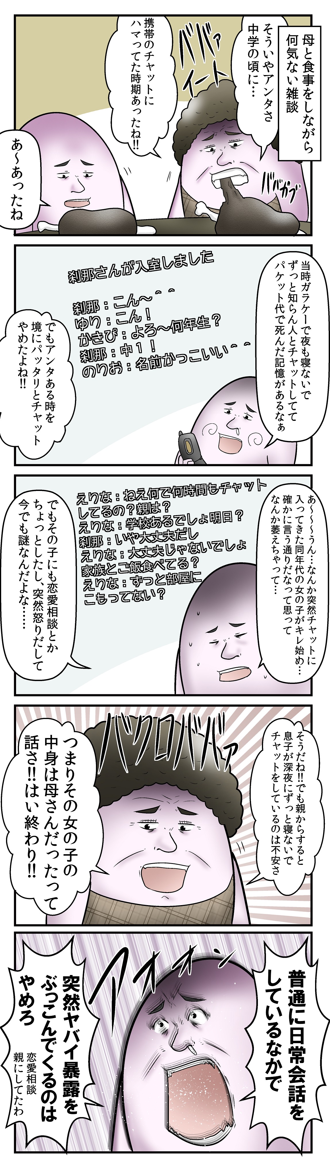2019年02月22日 僕と母親と過去の隠密行動の話 普通に母親に恋愛相談してたし、普通に母親に説教されてたってだけ。 「ババアと家族漫画」カテゴリの最新記事 タグ :#やしろあずき#4コマ 前の記事僕と担当編集と監視カメラの話 次の記事僕とフォロワーさんとの信頼関係の話 コメント コメント一覧 (54) 1. きなこ 2019年02月22日 12:03 お母さまが相も変わらず、素敵すぎる 0 やしろあずき がしました 2. えりな 2019年02月22日 12:03 死だね!死! 0 やしろあずき がしました 3. GTB 2019年02月22日 12:03 ババァヤベェ・・・ネットスキル高スギィ 0 やしろあずき がしました 4. 死炎龍パイロン 2019年02月22日 12:06 めっちゃワイルドなご飯で草 0 やしろあずき がしました 5. ARCH 2019年02月22日 12:07 ネットババア 0 やしろあずき がしました 6. みまもん 2019年02月22日 12:09 ナイスママン! サラッとやってたなんて凄い♪ 0 やしろあずき がしました 7. こて 2019年02月22日 12:10 お母様素敵すぎるだろ 0 やしろあずき がしました 8. ババァ信者 2019年02月22日 12:17 さすがお母様! 素晴らしい! 0 やしろあずき がしました 9. うんちょす 2019年02月22日 12:20 よく見つけたなぁ 0 やしろあずき がしました 10. ななし 2019年02月22日 12:27 セシリアにも騙され、母からは欺かれ、もはや誰を信じて、、、ですかな。 嫁さんが最後の砦ですな 0 やしろあずき がしました 16. 米 2019年02月22日 13:23 >>10 なお嫁さんは三角コーンを自宅に送る 0 やしろあずき がしました 40. 酢飯 2019年02月23日 08:57 >>16 嫁さんも敵で八方塞がりやんけ草 0 やしろあずき がしました 11. かんづめ 2019年02月22日 12:28 ババア頭良すぎぃ。 大好きだね! 0 やしろあずき がしました 12. じゃが 2019年02月22日 12:33 奥さんからも三角コーン送りつけられてるし、やしろあずきの前世はサンドバッグだったんだよ。 0 やしろあずき がしました 13. 豆 2019年02月22日 12:48 つまりからのスピード感、内容、終わり!の地獄さ、最高すぎて…!! あとやしろさんがお釈迦さまの手の平の上の悟空すぎて(;▽;) 0 やしろあずき がしました 14. 雷蔵 2019年02月22日 12:56 お母様最高過ぎます(笑) 日常的な会話の中にシレッとブッ込んでくるとこが素敵ですw まさしく、浮かれてる息子に対しての愛でもあり死でもありますね! 0 やしろあずき がしました 15. えりな 2019年02月22日 13:07 これは死ねる。 ババアとあずきさんの関係だから暴露できるんだろうなぁ。 てか、ババア思春期の息子との向き合い方がすげー。 0 やしろあずき がしました 17. ひろみ 2019年02月22日 13:27 お母様、ステキ。 その手、マルッとサクッといただきます(゚∀゚) 0 やしろあずき がしました 18. まるみ 2019年02月22日 13:55 お母様にあこがれてます 0 やしろあずき がしました 19. 青い衣のコンビニ店員 2019年02月22日 13:58 ババア様マジ最高! 0 やしろあずき がしました 20. はな 2019年02月22日 15:03 相変わらず いいお母さんだね 私は やしろさんみたいな息子を無事に育てられる気がしない 0 やしろあずき がしました 21. ぷー 2019年02月22日 15:06 お母様最強!なんて素敵なんでしょう 0 やしろあずき がしました 22. 骨付き肉 2019年02月22日 15:15 ババァ様最高!!(꒪꒫꒪ノノ"パチパチ 息子の為にそこまで出来るなんて、素敵(惚れる) 0 やしろあずき がしました 23. 名無し 2019年02月22日 15:57 刹那♡えりな 0 やしろあずき がしました 24. さ迷うカラーコーン 2019年02月22日 16:07 コレは辛い…。 0 やしろあずき がしました 25. 橙 2019年02月22日 16:27 他人事だから笑えるw 0 やしろあずき がしました 26. 🔺🌽 2019年02月22日 16:37 そんなことより食事方法がおかしい件について 0 やしろあずき がしました 27. 名無し 2019年02月22日 19:08 ただの地獄で草 0 やしろあずき がしました 28. コンポタ 2019年02月22日 19:18 痛恨の一撃ww 0 やしろあずき がしました 29. 通りすがりの名無し 2019年02月22日 19:38 謎肉の色かたちが凄すぎて、内容が頭に入ってこない… 0 やしろあずき がしました 30. バク 2019年02月22日 20:00 わっぴぃってチャットハマってたわ 0 やしろあずき がしました 31. ドルフ 2019年02月22日 20:52 はやぶさ2の着陸みたいだな。 0 やしろあずき がしました 32. 4人のおかん🎶息子は1人 2019年02月22日 21:53 こんなお母さんになりたい✨ 0 やしろあずき がしました 33. ななし 2019年02月22日 23:09 めちゃくちゃ面白い話ですね🤣 0 やしろあずき がしました 34. 名無しの権兵衛 2019年02月23日 01:12 これがハイテクババァか 0 やしろあずき がしました 35. ななし 2019年02月23日 05:01 アーキネーターにやしろさん居ました! カラーコーンネタもきっちり出てましたよ 0 やしろあずき がしました 36. 🍍ナリ🍍 2019年02月23日 06:26 ババア有能すぎワロタ 息子を正しい道に導くのがうますぎる シークレットババアリード 0 やしろあずき がしました 37. 名無し 2019年02月23日 08:09 ある意味エッチな本を見つけられるよりキツい しかしこの息子の周囲にさりげなく潜入するスキル・・・ お母さんは何かのエージェントなんでしょうか。 0 やしろあずき がしました 38.