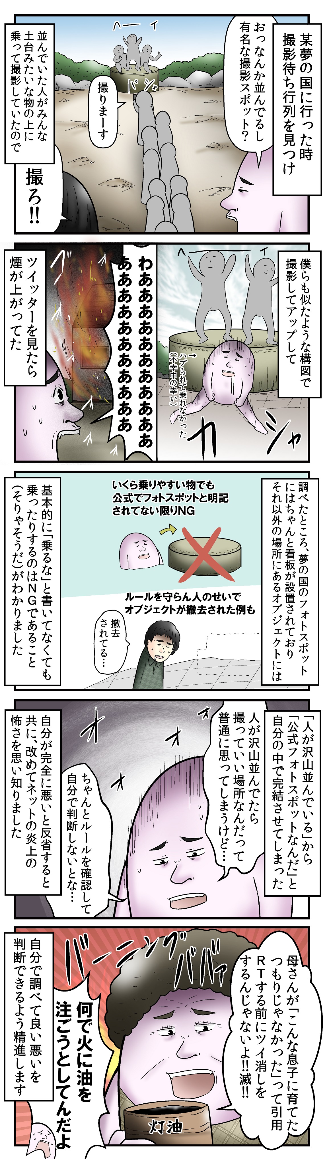 あそこまで並ばれてると多分並んでる人の大半が乗っちゃいけない場所だって気づかないで撮影→アップを行ってると思うのでかなり回避が難しい問題だなとも思いました。