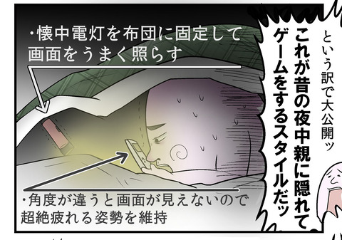 そのあとフォロワーさんに聞いたんだけど、今は今で親が飛んでるWi-Fiをチェックして子供がゲームやってないか調べる文化もあるらしい。 時代と共に親の作戦も進化してるんだな…… 皆様も昔親から隠れてゲームをやる際に使っていた技や思い出などあったら教えて