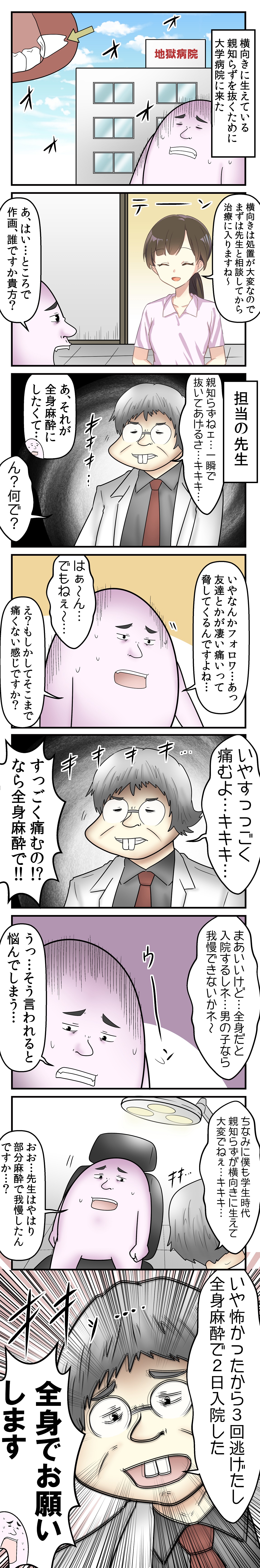 親不知は全部横向きに生えてたけど局部麻酔で全然余裕だった。