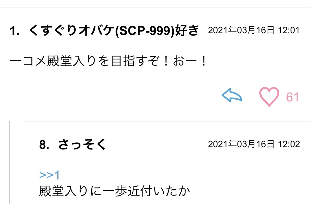 あと数回連続で殿堂入りです!殿堂入り後は新たな1コメ争いを見守るんだぞ