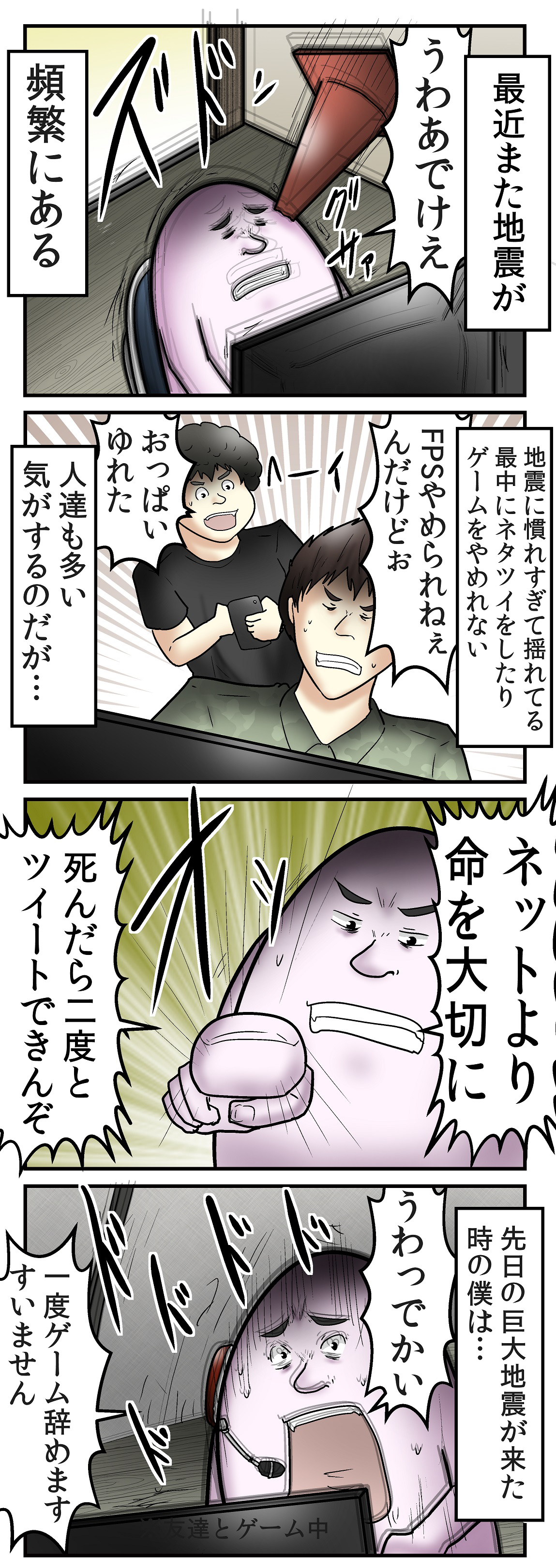 地震起きたらゲームや筋トレを中断して命優先しなくちゃいけない!