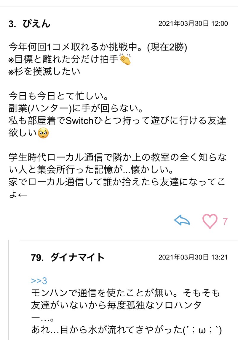 学生時代にローカル通信で教室の見ず知らずの人と一緒に狩りにいくのめちゃくちゃドキドキして楽しかった記憶あるなぁ~~~