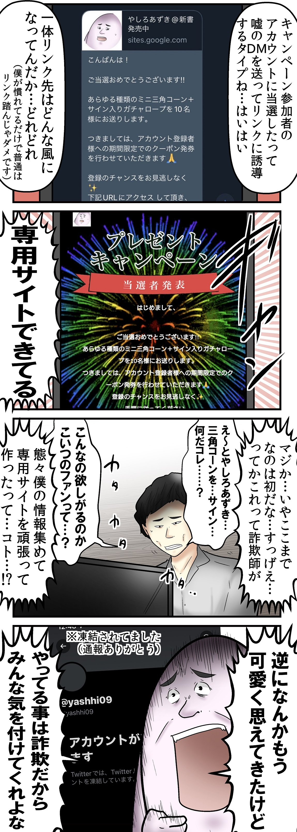 この前も何かの企画に当選しました!!ってDMきて喜んで見たら偽物だった
