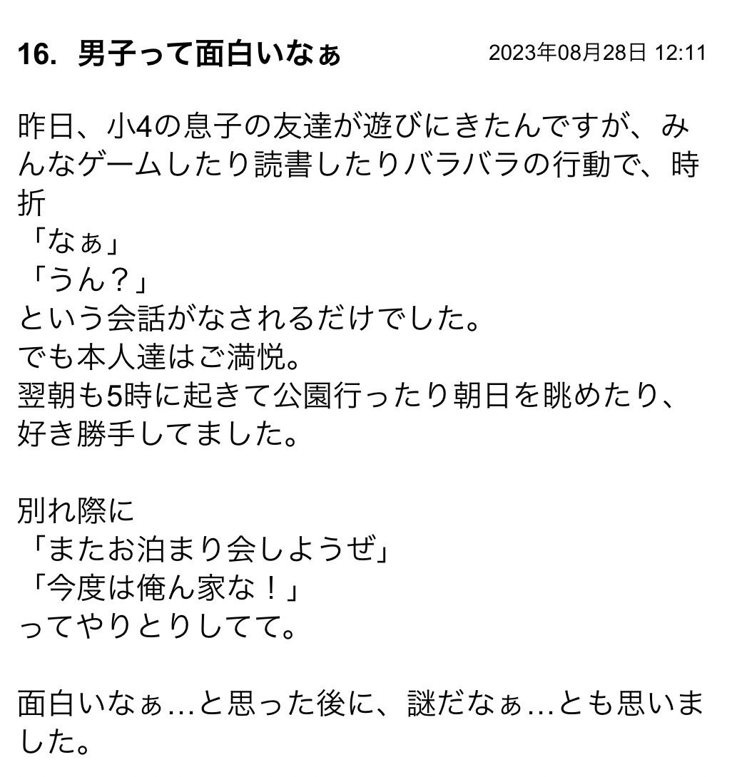 あーそれは男子あるある。この年齢でもある。普通に居心地良いんだよなそういうの
