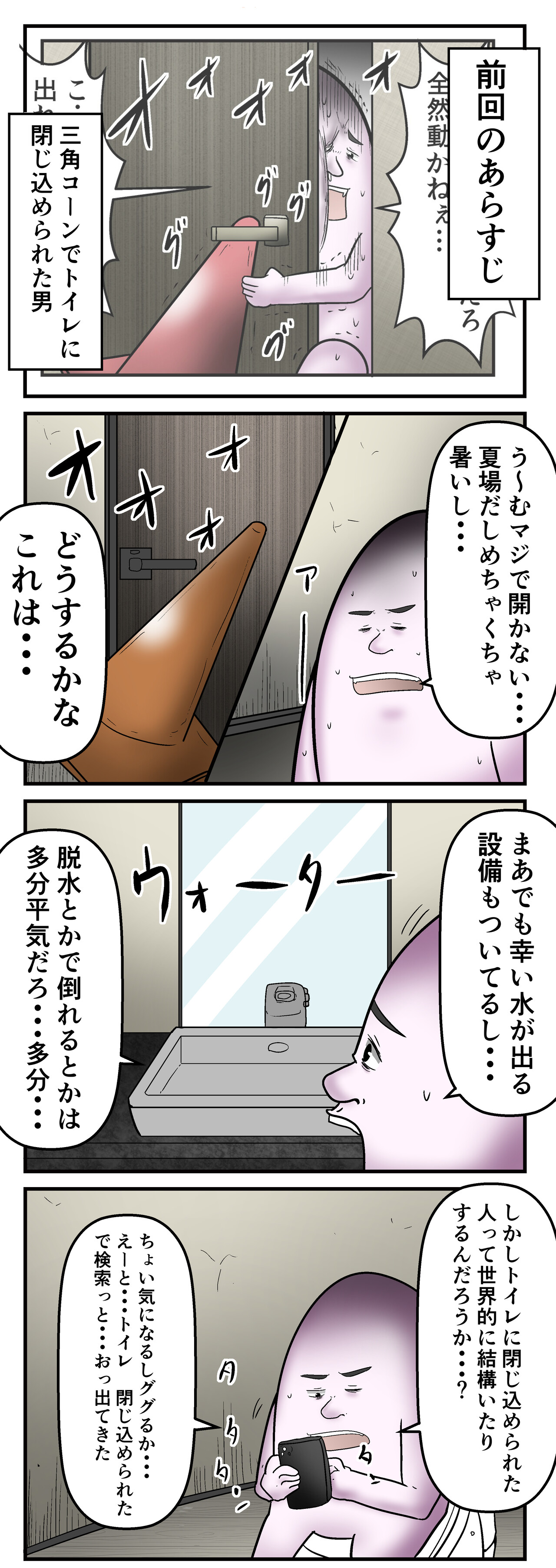 三角コーンによって閉じ込められた話、第1話は以前描いたものですが、
