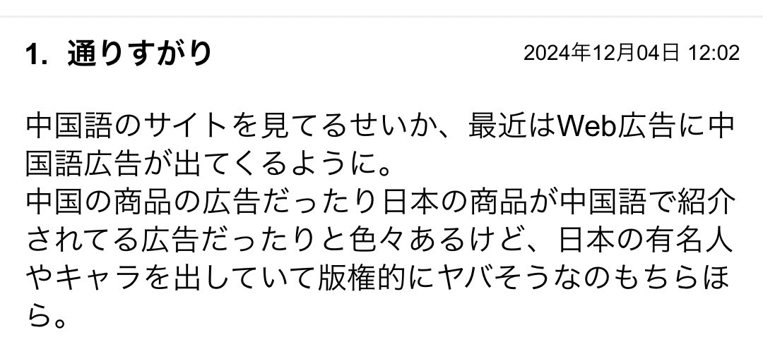 今日のコメント欄