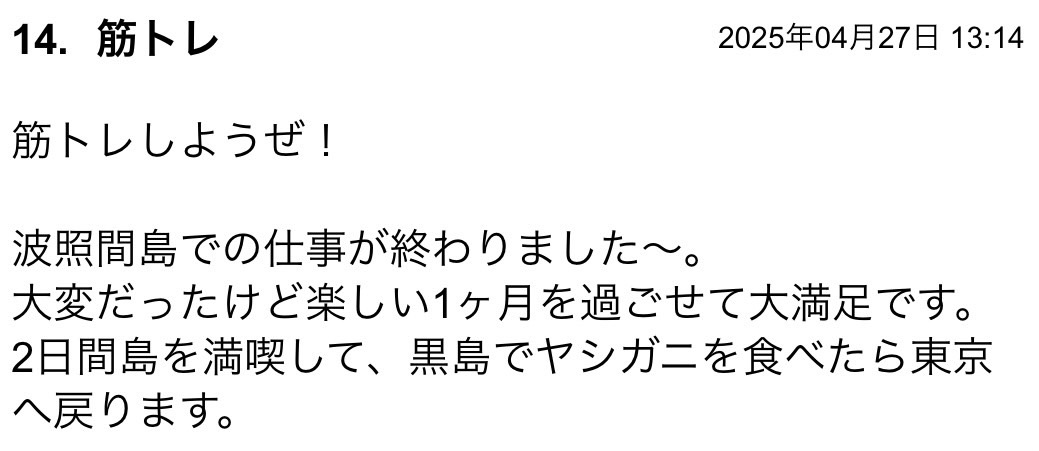 島はゆっくり出来ていいですね〜。