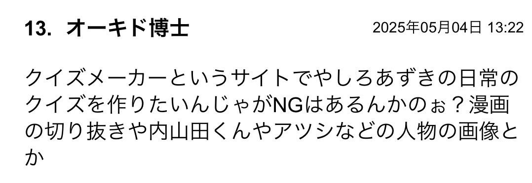 今日のコメント欄