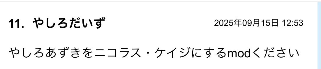 今日のコメント欄