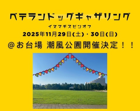 先週末は、『イヌマチスピンオフ』ありがとうございました! 日曜日は僕も犬を連れて行きました。 きなここあ。広いところで走り回れてテンション高いです。 北海道から来てくれた方も! ベテランドッグギャザリングの様子。 ベテランドッグたち。 今回お台場は